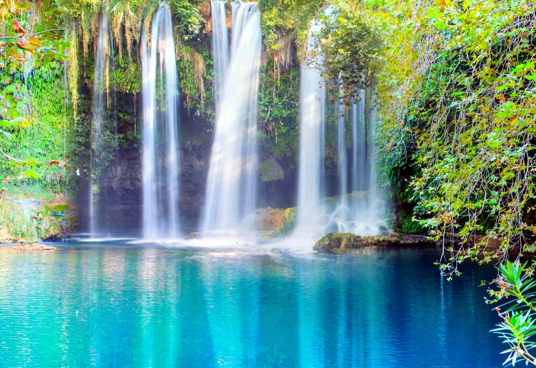 Kursunlu Waterfall, set within a lush park near Antalya, is a spectacle of nature’s beauty. The sound of cascading water creates an immediate sense of serenity as it flows over terraced cliffs, surrounded by greenery. Wooden pathways guide visitors, allowing them to appreciate the waterfall from various angles. The clear pools at its base shimmer in the sunlight, making Kursunlu a refreshing visual retreat. This natural wonder offers a brief escape, resonating with peace and tranquility.